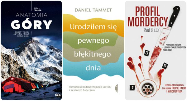 Początek łatwy, bo dwie z nich są wznowieniami. Urodziłem się pewnego błękitnego dnia to klasyka literatury o zespole Aspergera! Książka była nie do kupienia, więc tym bardziej cieszę się, że pojawiło się wznowienie. To była jedna z pierwszych książek, jakie przeczytałam na ten temat – jest doskonała. Daniel Tammet świetnie pisze, wprowadza nas do wyjątkowego świata, w którym liczby mają smaki, a dni tygodnia kolory! Niesamowita lektura, którą powinien poznać każdy! Profil mordercy z kolei to obowiązkowa lektura dla wszystkich zainteresowanych tematami kryminalnymi. Czytałam ją dawno temu i w tym przypadku również cieszę się z wznowienia (choć serce krwawi z powodu okładki). Paul Britton jest faktycznie jednym z najsłynniejszych profilerów, a książka w zasadzie czyta się sama. Warto wiedzieć jednak, że z Brittonem wiąże się też kilka kontrowersji, z którymi warto się zapoznać po lekturze tej książki. Anatomia góry w ogóle Was nie zdziwi – jeśli Rafał napisał tę książkę tak jak pisał dzienniki z wyprawy na K2 to już nie mogę doczekać się lektury!