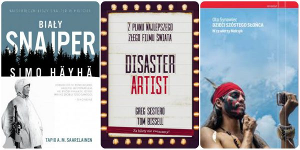 To książki, które mnie w pewien sposób fascynują. Pisałam ostatnio, że polubiłam się mocno z wydawnictwem Vesper i Biały snajper jest tego doskonałym przykładem. Simo Häyhä to najskuteczniejszy snajper w historii, a ja chcę poznać jego życie. To może być naprawdę fascynująca lektura! Disaster artist chyba nie trzeba nikomu przedstawiać? Na podstawie tej książki powstał film, który opowiada o historii powstawania filmu The Room, stworzonego przez Tommy’ego Wiseau. Z kolei film The room jest absolutnie kultowy – jako najgorszy film, jaki kiedykolwiek powstał. Każdy szanujący się widz musi go zobaczyć chociaż raz! Dzieci Szóstego Słońca to opowieść o współczesnym Meksyku i jego wierze. O ile sam Meksyk jakoś specjalnie mnie nie pociąga, to zderzenie jego historii ze współczesnością z pewnością będzie bardzo dobre.