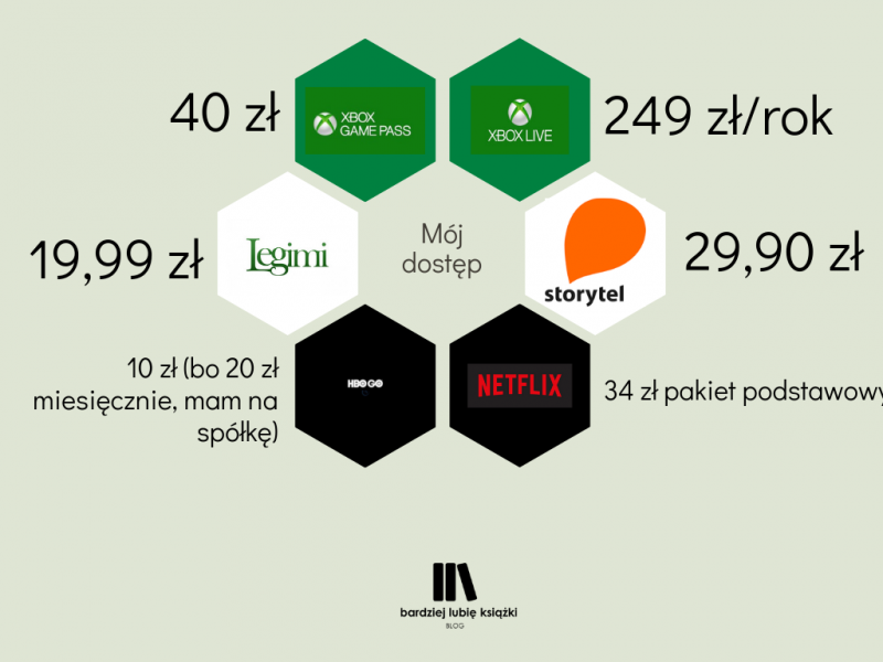Łącznie miesięcznie znika mi około 120 zł. Za praktycznie nieograniczony dostęp do filmów, książek, audiobooków i gier. A przecież nie trzeba korzystać z tego wszystkiego, można wybrać to, co jest najważniejsze, jeśli się nie chce inwestować zbyt dużych pieniędzy. Nie chcę oceniać, czy 120 zł to dużo czy mało, czy kogoś stać czy nie, bo to wtedy byłby zupełnie inny wpis. Tak samo inny byłby o darmowej kulturze, bo taka też jest. Wiem jedynie, że zawsze można zrezygnować z czegoś na rzecz czegoś innego. Biorąc pod uwagę, że 120 zł to często jedno wyjście do kina (w weekend w Warszawie) dla dwóch osób, ja wybieram nie chodzenie w weekend do kina. Wolę miesiąc rozrywki w domu.