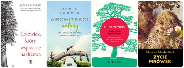 Nurt przyrodniczy jeszcze się nie kończy. Mocno się już ograniczam z takimi książkami, ale tych nie mogłam sobie odmówić. Człowiek, który wspina się na drzewa zachwyca tytułem, okładką i osobą autora. James Aldred jest dokumentalistą i reportażystą BBC, a jego pasją i zawodem, jakkolwiek dziwnie by to nie zabrzmiało, jest wspinanie się na drzewa. Chcę poznać jego historię! Książka Architekci natury przyciąga tematem, choć budzi też moje wątpliwości – została napisana przez przyrodnika celebrytę (użycie tego słowa jednak nie wróży dobrze) a w zapowiedziach powtarzany jest mit o tym, że Wielki Mur Chiński jest widoczny z kosmosu (to też nie wróży dobrze). Mimo wszystko chcę ją przeczytać, bo ciekawi mnie bardzo sam temat. Shinrin-yoku. Sztuka i teoria kąpieli leśnych na początku z kolei może brzmieć śmiesznie, ale przecież wszyscy wiemy, że przytulanie drzew jest fajne i dobre. Warto wiedzieć o tym więcej! No i Życie mrówek Maeterlincka. Absolutnie przepiękne wydania jego książek będą ozdobą każdej biblioteki, a i treść jest fascynująca. I język przepiękny!